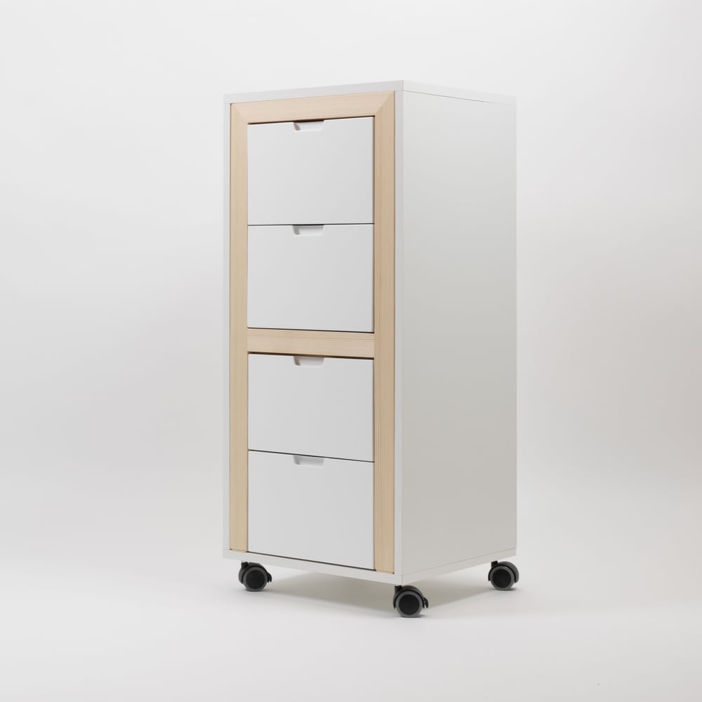 Materiales: Cajonera de melamina y contrachapado de abedul. Silla de pino macizo.